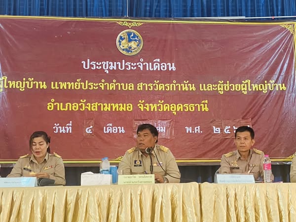 วันที่ ๔ มีนาคม ๒๕๖๘ เวลา ๐๙.๐๐ น. นางจิรประภา พิทักษ์สกุลพงศ์ ผู้อำนวยการ สกร.ระดับอำเภอวังสามหมอ มอบหมายให้ นายณัฐพงศ์ โสภิณ ครูชำนาญการ เข้าร่วมประชุมกำนันผู้ใหญ่บ้าน ครั้งที่ ๓ โดยมี นายธวัช พรมโสภา นายอำเภอวังสามหมอ เป็นประธานการประชุมครั้งนี้ ณ หอประชุมที่ว่าการอำเภอวังสามหมอ จังหวัดอุดรธานี