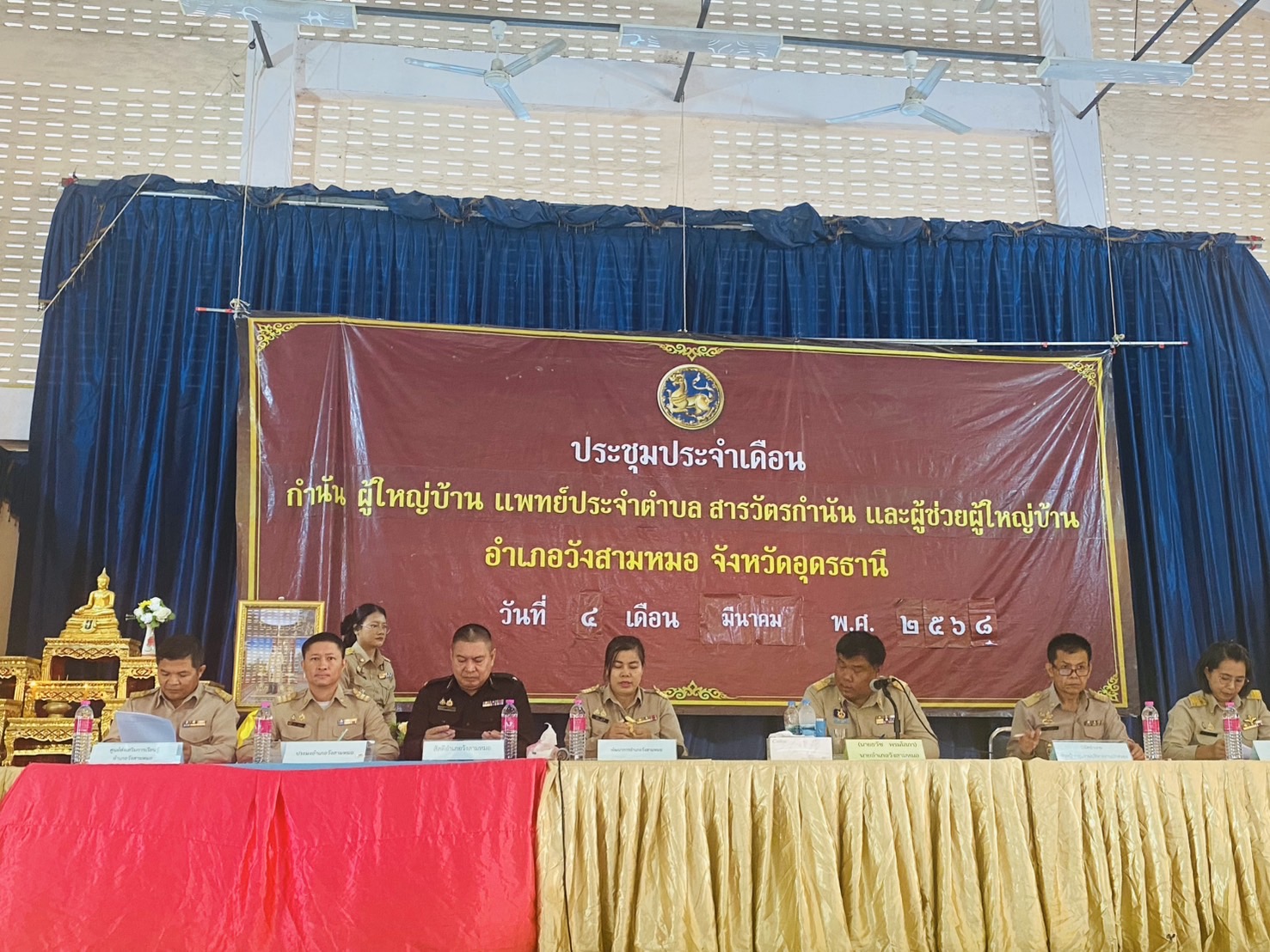 วันที่ ๔ มีนาคม ๒๕๖๘ เวลา ๐๙.๐๐ น. นางจิรประภา พิทักษ์สกุลพงศ์ ผู้อำนวยการ สกร.ระดับอำเภอวังสามหมอ มอบหมายให้ นายณัฐพงศ์ โสภิณ ครูชำนาญการ เข้าร่วมประชุมกำนันผู้ใหญ่บ้าน ครั้งที่ ๓ โดยมี นายธวัช พรมโสภา นายอำเภอวังสามหมอ เป็นประธานการประชุมครั้งนี้ ณ หอประชุมที่ว่าการอำเภอวังสามหมอ จังหวัดอุดรธานี