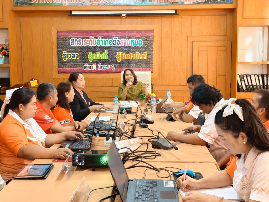 วันพฤหัสบดีที่ 24 กรกฎาคม ๒๕๖๘ นางจิรประภา พิทักษ์สกุลพงศ์ ผู้อำนวยการ สกร.ระดับอำเภอวังสามหมอพร้อมด้วยคณะครู สกร.ระดับอำเภอวังสามหมอ ได้เข้าร่วมอบรมโครงการพัฒนาบุคลากร เพื่อเตรียมความพร้อมด้านการดำเนินงานศูนย์การเรียนรู้ตามหลักปรัชญาของเศรษฐกิจพอเพียง ประจำปีงบประมาณ 2568 โดยมีนางนงลักษณ์ แก้วนามเมือง ผู้อำนวยการ สกร.ระดับอำเภอเพ็ญ เป็นวิทยากรให้ความรู้ ณ ห้องประชุมเมธานิธิกุล ศูนย์ส่งเสริมการเรียนรู้ระดับอำเภอวังสามหมอ อำเภอวังสามหมอ จังหวัดอุดรธานี