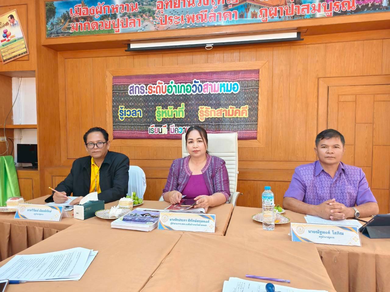 วันจันทร์ที่ ๑๕ กันยายน ๒๕๖๘ นางจิรประภา พิทักษ์สกุลพงศ์ ผอ.สกร.ระดับอำเภอวังสามหมอ พร้อมด้วยนายณัฐพงศ์ โสภิณ ครูชำนาญการ และนายวิวัฒน์ น้อยพิทักษ์ ครูชำนาญการ เป็นคณะกรรมการรายงานผลการปฏิบัติงาน ครั้งที่ ๒ ( ๑ เมษายน ๒๕๖๘ ถึง ๓๐ กันยายน ๒๕๖๘ ) ประจำปีงบประมาณ พ.ศ. ๒๕๖๘ ตำแหน่ง พนักงานราชการทั่วไปและจ้างเหมาบริการทุกตำแหน่ง ณ สกร.ระดับอำเภอวังสามหมอ อำเภอวังสามหมอ จังหวัดอุดรธานี
