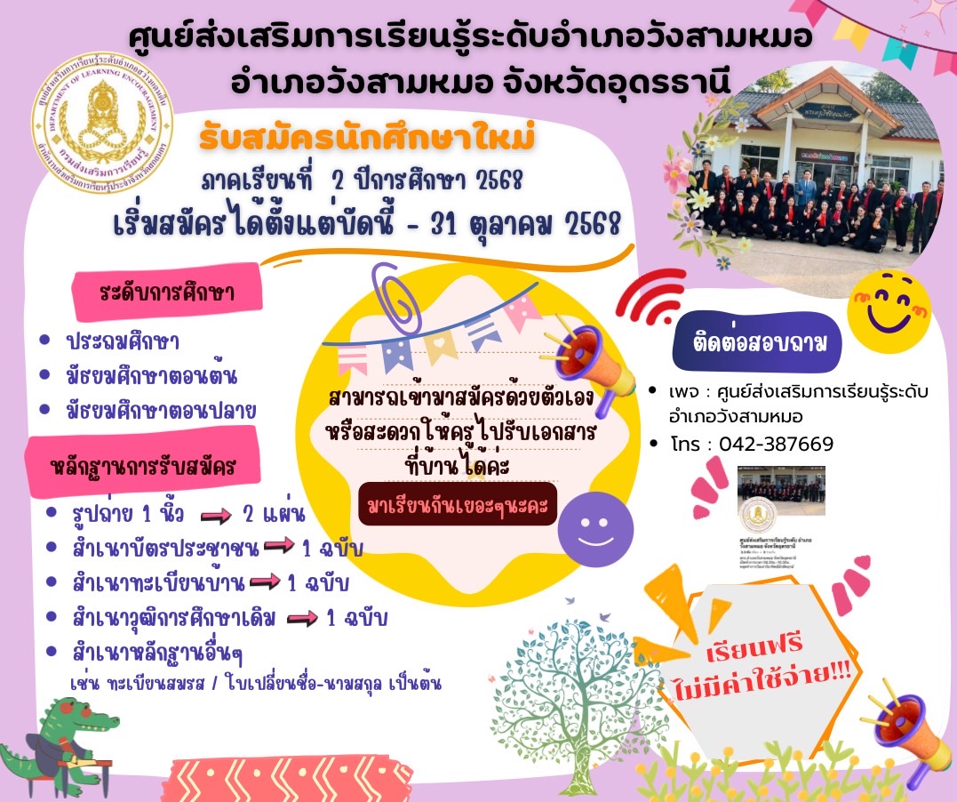 ประกาศ รับสมัครนักศึกษาใหม่ ภาคเรียนที่ 2/2568