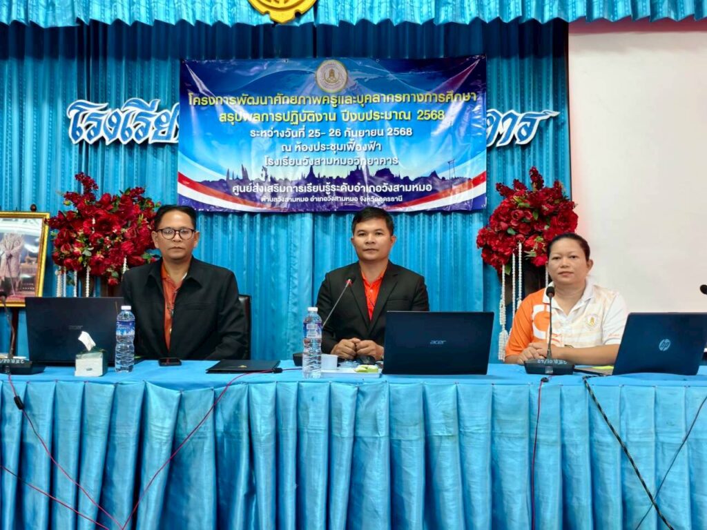 วันพฤหัสบดีที่ ๒๕ กันยายน ๒๕๖๘ นางจิรประภา พิทักษ์สกุลพงศ์ ผอ.สกร.ระดับอำเภอวังสามหมอ พร้อมด้วย นายณัฐพงศ์ โสภิณ,นายวิวัฒน์ น้อยพิทักษ์ ครูชำนาญการ จัดโครงการพัฒนาศักยภาพครูและบุคลากรทางการศึกษาและสรุปผลการปฏิบัติงาน ให้กับคณะครู สกร.ระดับ อำเภอวังสามหมอ ประจำปีงบประมาณ พ.ศ.๒๕๖๘ โดยมีนายอิทธิพล พลพระจันทร์ ผู้อำนวยการโรงเรียนวังสามหมอวิทยาคาร ให้เกียรติพบปะในโครงการดังกล่าว ระหว่างวันที่ ๒๕-๒๖ กันยายน ๒๕๖๘ ณ ห้องประชุมเฟื้องฟ้าโรงเรียนวังสามหมอวิทยาคาร อำเภอวังสามหมอ จังหวัดอุดรธานี