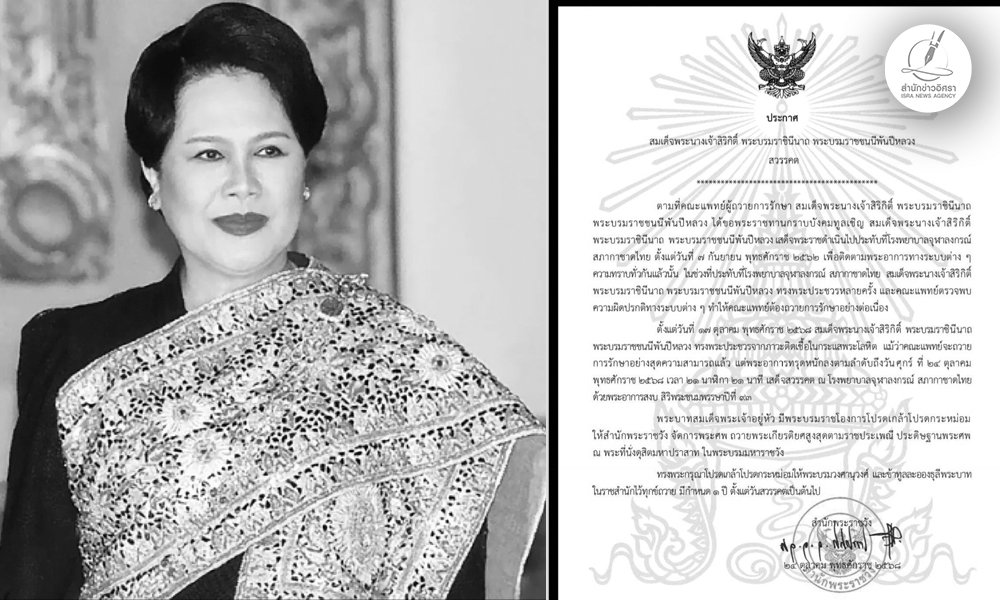 สำนักพระราชวังเผยแพร่ประกาศ พระพันปีหลวง เสด็จสวรรคต เมื่อเวลา 21.21 น. วันที่ 24 ต.ค.68 ณ โรงพยาบาลจุฬาลงกรณ์ ด้วยพระอาการสงบ สิริพระชนมพรรษาปีที่ 93