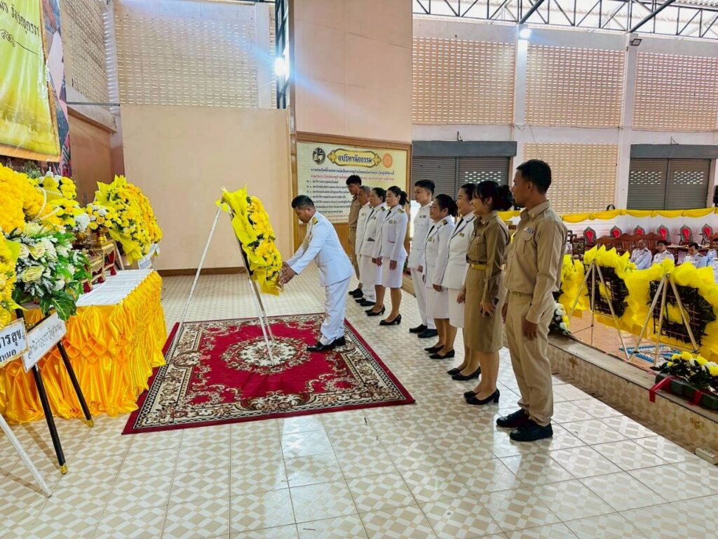 วันจันทร์ที่ ๑๓ ตุลาคม ๒๕๖๘ นางจิรประภา พิทักษ์สกุลพงศ์ ผอ.สกร.ระดับอำเภอวังสามมอบหมายให้นายณัฐพงศ์ โสภิณ ข้าราชการครู และตัวแทนคณะครู สกร.ระดับอำเภอวังสามหมอ เข้าร่วมกิจกรรมวันนวมินทรมหาราช วันคล้ายวันสวรรคต พระบาทสมเด็จพระบรมชนกาธิเบศร มหาภูมิพลอดุลยเดชมหาราช บรมนาถบพิตร น้อมรำลึกในพระมหากรุณาธิคุณอันหาที่สุดมิได้ โดยมีพิธีเจริญพระพุทธมนต์และทำบุญ ตักบาตรถวายพระราชกุศล พิธีวางพวงมาลา โดยมีนายธวัช พรมโสภา นายอำเภอวังสามหมอเป็นประธานในพิธี ณ หอประชุมที่ว่าการอำเภอวังสามหมอ อำเภอวังสามหมอ จังหวัดอุดรธานี