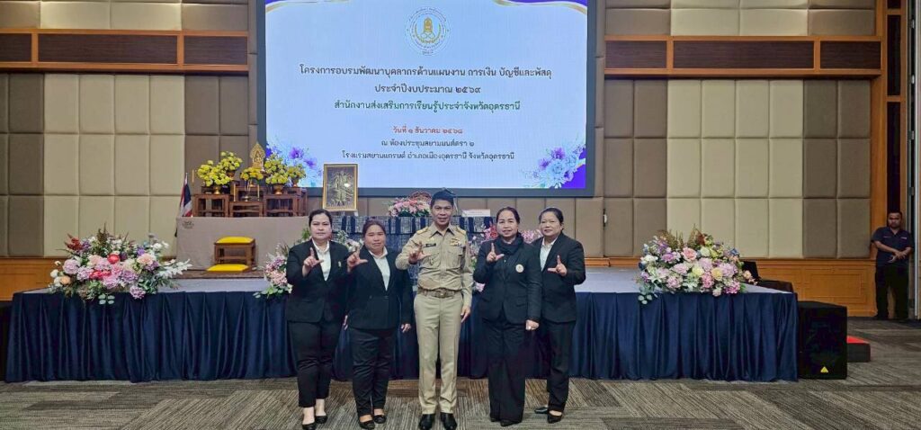 วันจันทร์ที่ 1 ธันวาคม 2568 นางจิรประภา พิทักษ์สกุลพงศ์ ผู้อำนวยการ สกร.ระดับอำเภอวังสามหมอพร้อมกับ นางวิมล โสภิณ, นางสาวแคทรียา พิทักษ์ นางสาวชไมพร เหล่ารัตน์ศรี ครูศูนย์การเรียนรู้ เข้าร่วม โครงการอบรมพัฒนาบุคลากรด้านแผนงาน การเงิน บัญชี และพัสดุ ประจำปีงบประมาณ พ.ศ. 2569 เพื่อเพิ่มพูนความรู้ ความเข้าใจ และยกระดับประสิทธิภาพในการปฏิบัติงานของบุคลากรให้เป็นไปตามระเบียบ กฎหมาย และมีความโปร่งใส พิธีเปิดโครงการฯ ได้รับเกียรติจาก นายชินกร คะอังกุ ผู้อำนวยการสำนักงานส่งเสริมการเรียนรู้ประจำจังหวัดอุดรธานี เป็นประธานในพิธี ณ ห้องประชุม สยามแกรนด์มนตรา 1 โรงแรมสยามแกรนด์ อำเภอเมือง จังหวัดอุดรธานี มีผู้เข้าร่วมอบรมประกอบด้วยผู้บริหารสถานศึกษา ข้าราชการครู และบุคลากรทางการศึกษาในสังกัด สกร.อุดรธานี