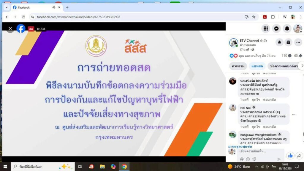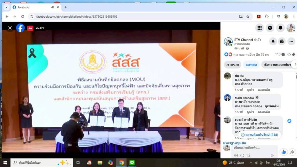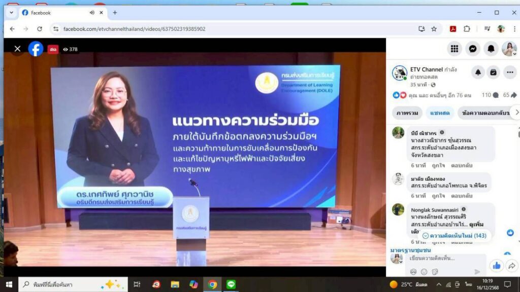 ร่วมรับชมการถ่ายทอดสดผ่านช่องทาง Facebook Live ETV Channel ณ ห้องประชุมวังไม้