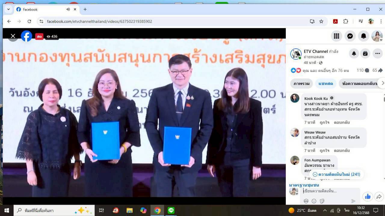 ร่วมรับชมการถ่ายทอดสดผ่านช่องทาง Facebook Live ETV Channel ณ ห้องประชุมวังไม้